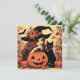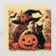 Hier ist eine Retro aussehende Halloween-Karte mit einer hübschen Hexe in einem spitzen Hexenhut mit einer schwarzen Katze und einem Kürbis. Im Hintergrund befindet sich ein Blätter mit Herbstprogrammen. Die Karte hat einen deutlich erkennbaren 60er oder 70er-Look. Es ist eine coole Karte, die Sie als Einladung, als Grußkarte oder als Geschenkkarte verwenden können. Diese Karte wird von jedem geschätzt, der seltsame Sachen, Retro und Vintage Kunst, Illustrationen und Hexen mag.