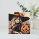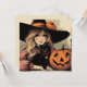 Retro Halloween Hexe mit Schwarzer Katze und Kürbi Karte