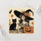 Retro Halloween Hexe und Black Cat Niedlich Karte