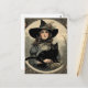 Retro Halloween Hexe und Black Cat Postkarte