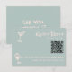 Eine einzigartige und elegante Kalligraphie bunt Retro Hochzeit rsvp Karte. Wie Sie sehen, hat es einen Vintagen, modernen blauen Hintergrund mit einem handgeschriebenen, rot-rosa Schrift und handgemalten Champagner- und Martini-Gläsern. Und anpassbarer QR-Code, damit Ihre Einladungen einfach online uAwg werden können. Sie können es bearbeiten, indem Sie auf den Personalisieren-Button klicken.