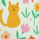 This is cute wallpaper featuring happy smiling cats surrounded by simple retro-style flowers in orange, pink, and peach. A fun and cheerful wallpaper for kids room, teen girl room or anyone who love cats and enjoys cute and playful patterns.