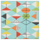 Dieses Retro Harlekin-Muster gekämmte Baumwollgewebe ist moderne Art der Mitte des Jahrhunderts an seinem feinsten. Die Vintagen inspirierten Ausrüstungsbeschreibungen, die ein Aquahintergrund mit Reihen der dreieckigen Formen, die einen Harlekin bilden, kopieren. Die zwei-getonten Diamantformen sind gelb, weiß, rot, orange, schwarz, grün und Weiß mit schwarzen Akzenten. Aber Wartezeit, dort ist mehr! Es gibt auch orange Ovale, grüne Ovale mit schwarzen Sternexplosionen und Konturen der schwarzen Diamanten. Setzen Sie Zeit März an fest, aber Sie glauben, wie Sie eine kitschy Explosion von der Vergangenheit mit diesem bunten geometrischen Schatz gefunden haben.