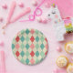 Genießen Sie einen lustigen Retro-Look, der an den Zirkus erinnert, mit Party-Tellern in einem Vintagen Harlequin-Design in den Farbtönen aquamarin, Minze, Rot, Rosa und Beige. Hier wird nur das Harlequin-Muster gezeigt, es gibt auch eine personalisierte Geburtstagsversion dieses Designs. In diesem Design sind passende Servietten erhältlich.