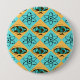 Dieses Retro Harlequin Globe Trotter Round Button Design zeichnet sich durch ein sich wiederholendes Muster eines abstrakten ovalen Globus aus, der mit Holzkornkontinenten und atomaren Symbolen ausgestattet ist. Die Ozeane auf der Vintagen Erde sind in aquamarinen und türkisfarbenen Tönen gehalten. Der Globus befindet sich auf einem dreieckigen Holzständer und die ganze Welt ist auf einem weizenfarbenen Hintergrund. Die atomaren Symbole sind auf türkisfarbenem Hintergrund. Dieses Design ist kitschig, das Weltraum ist gut und das Beste!