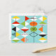 Dieses Retro Harlequin Pattern Postcard ist ein modernes Design aus der Mitte des Jahrhunderts. Das Vintag inspirierte Design besteht aus einem Aquahintergrund, dessen dreieckige Formen ein harlequin-Muster bilden. Die zwei Farbtöne sind gelb, weiß, rot, orange, schwarz, grün und weiß mit schwarzen Akzenten. Aber warten Sie, es gibt noch mehr! Orangefarbene Ovale, grüne Ovale mit schwarzen Sternexplosionen und Konturen mit schwarzen Diamanten. Zeit März, aber Sie werden sich fühlen, als hätten Sie eine kitschige Explosion aus der Vergangenheit mit diesem bunten geometrischen Schatz gefunden.