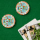 Diese Retro Harlequin Pattern Poker Chips sind im modernen Stil des Mitteljahrhunderts und in seiner schönsten Form. Das Vintag inspirierte Design besteht aus einem Aquahintergrund, dessen dreieckige Formen ein harlequin-Muster bilden. Die zwei Farbtöne sind gelb, weiß, rot, orange, schwarz, grün und weiß mit schwarzen Akzenten. Aber warten Sie, es gibt noch mehr! Orangefarbene Ovale, grüne Ovale mit schwarzen Sternexplosionen und Konturen mit schwarzen Diamanten. Zeit März, aber Sie werden sich fühlen, als hätten Sie eine kitschige Explosion aus der Vergangenheit mit diesem bunten geometrischen Schatz gefunden.