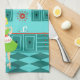 Mit diesen Retro Hausfrau Küchenhandtücher können Sie Ihren Kuchen und essen Sie es auch. Diese kitschige, minimalistische Kunst zeichne eine perfekte Hausfrau aus den 50er Jahren, in ihrer modernen Küche Mitte des Jahrhunderts. Der schöne Bäcker trägt ein Flouncy, grünes Kleid und eine weiße Schürze mit roten Details. Kein Haar auf ihrem blonden Kopf ist fehl am Platz. Auf der einen Seite hält sie die Frucht ihrer Arbeit - ein wunderschöner, Gitterschlag, Obstkuchen. Ein Blick und Sie werden wissen, dass ihre gebackenen Kuchen Krusten sind zweitrangig. Sie ist stehend in einem Aqua-und aquamarinen Schachbrett-Boden, der zweifellos sauber genug ist, um zu essen. An einer Wassermauer sehen wir aquamarine Kabinettsysteme mit Aqua-Trimmarbeiten, ein rotes Gegenstück, rote Schubladen und Akzente aus schwarzer Sternexplosion. An der Wand hängt eine rote Sternexplosion. Auf der Seite befindet sich ein Staat der Kunst, weißer Kühlschrank mit silbernen Griffen. Zumindest war der Kühlschrank Staat der Kunst in den 1950er Jahren. Jetzt ist es nur schlichte Träumerei! Ob Sie nun Suzie Homemaker sind oder einfach nur eine Affinität zu allem Vintagen haben, Sie werden sicher sein, dass Sie diese skrupellose Scheibe von Americana Liebe.