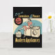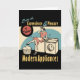 Genießen Sie den Komfort und das Vergnügen moderner Geräte! Diese Hausfrau ist wie ein Retro-50er gestaltet und genießt ihren Waschmaschine und Trockner.