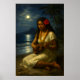 Retro Hawaiian Girl & Ukulele On A Moonlit Beach Poster