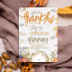 Diese fröhliche Herbstveranstaltung lädt Freunde und Familie ein, sich für ein Erntedank-Dinner zu treffen und sich zu bedanken. Es zeigt eine wunderschöne Aquarellillustrierung eines Erntedanks in warmen Herbstfarben - Orange, Salbei, lila und gelb - mit orangen Blätter und einer Retro Vintagen Platte. Die Vorderseite zeigt auch elegante, handgeschriebene Schrift, während die Rückseite eine weiche Terrakotta verbrannte orange Farbe bietet. Personalisieren und bearbeiten Sie diese Einladung zu Ihrem perfekten Erntedank laden!