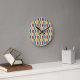 Diese Uhr hat ein modernes Design aus Retro-Hexagonen in Rot, Grün, Blau und Gold.