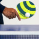 Retro HI VIS Yellow Three Circle Stripe with Name Tischtennis Schläger