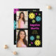 Abschluss-Ankündigung im Retro-Stil mit bunten Rosa, aquamarinen, grünen und gelben Blumen auf schwarzem Hintergrund und 2 Ihrer Lieblings-Fotos. Diese Karte ist sowohl auf der Vorder- als auch auf der Rückseite entworfen. Die Vorderseite der Karte hat Ihre Fotos, den Namen des Absolventen, den Namen der Schule, das Jahr des Abschlusses, und die Rückseite hat die Pläne Ihres Absolventen für die Zukunft. Kontaktieren Sie mich, um Hilfe bei Ihren Anpassungen zu erhalten oder um zusätzliche Matching oder Koordination von Zazzle Produkten für Ihren Abschluss zu verlangen.