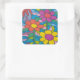 Retro Hippie Blume Art Quadratischer Aufkleber