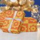 Retro-Hippie-Blume auf der Checkerboard Gelbes Ora Geschenkpapier