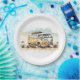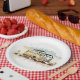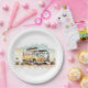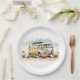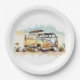 Retro-Hippie-Bus mit Blume Pappteller