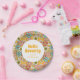 Groovy Retro Hippie Blume auf Deep Yellow Hintergrund Geburtstagspapier Teller.