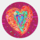 Retro Hippie Pink Türkis Herz Save the Date Runder Aufkleber