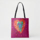 Die Tasche aus dem Valentinstag mit Retro-Hippie-Stil ist ein Herz in Rot, Rosa und Türkis auf einem rosa Hintergrund. Personalisieren Sie mit einem Namen in modernem Skript. Entworfen von dem weltbekannten Künstler Tim Coffey.