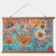 Retro Hippie: Sonnenaufgangsgarten Wandteppich Mit Holzrahmen