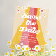 Die Retro Wedding Save The Date Postcard ist ein lebhaftes Fest der Liebe, mit kühnen Farbtönen und spielerischen Blumendesigns, die das Groovy Essence des Vintagen Stils einfangen. Mit seiner einzigartigen Typografie und dem Retro-Flair ist diese Postkarte ideal für die Ankündigung Ihres besonderen Tages. Es ist leicht anpassbar, um Ihre Persönlichkeit widerzuspiegeln, und ich bin hier um Ihnen zu helfen, wenn Sie Hilfe benötigen!