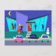 Diese Retro Holiday Cartoon Party Weihnachten Postkarte wird Sie in den Urlaub Geist bringen. Das Design besticht durch die Fassade eines modernen Hauses aus der Mitte des Jahrhunderts. Durch den Boden bis zur Decke der türkisblauen Wände können wir die marineblauen Silhouetten der festlichen Party sehen. Vor einem grünen Weihnachtsbaum, der mit aquamarinen Ornamenten geschmückt ist, gibt es ein paar Chat. Auf der anderen Seite des Raumes sehen wir einen tanzenden Mann und den langatmigen Mann, den alle zu vermeiden versuchen. Im Außenbereich des Hauses befindet sich eine fröhliche rote Tür mit einem Urlaubskranz, einem übergroßen lila Backsteinkamin und vielen bunten Weihnachtsbeleuchtung. Ein grauer Gang schneidet einen Schwanz durch das aquamarine Gras zur Haustür. Die nächtliche Szene hat einen dunkelblauen Himmel mit einem gelben, halbmondförmigen Mond. Der Plastikschneemann, der den Vorgarten schmückt, wird von den ersten Schneeflocken der Saison begrüßt. Ein attraktives Paar macht den Cha-cha-cha auf dem Weg zu ihrem Auto. Die blonde Frau trägt ein leuchtend rotes Kleid. Sie hält einen Haufen Misteloe in einer Hand. Ihr hübscher Begleiter trägt einen schwarzen Anzug und eine rote Krawatte. Seine Hände sind um die Taille der Frau gewickelt. Auf der Straße, vor dem Haus, können wir drei klassische Autos in lebhaften Farben sehen. Bestellen Sie noch heute und Party wie 1959!