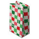 A vintage red, pink, green and cream grid patterned bright retro holiday gift bag