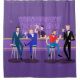 Dieser Retro homosexuelle Bar-Duschvorhangentwurf ist lila äußerst fabelhaft, kitschy, und! Sitzend auf Mitte des Jahrhunderts modernen barstools, ihren Spaß trinkend, haben rosa Getränke, diese adretten Herren ein homosexuelles ol' Zeit. Der hunky Barkeeper mit einem rosa bowtie gießt bereits die folgende Runde. Die Silhouetten des Atomalkohols füllt Linie die Wand ab und die helle Befestigung Vintager Sechzigerjahre Sputnik-Art hängt weg zur Seite. Die einzige Sache gerade über dieses Bar ist das Bar!
