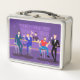 Dieser Retro homosexuelle Bar-MetallLunchboxentwurf ist- lila äußerst fabelhaft, kitschy, und! Sitzend auf Mitte des Jahrhunderts modernen barstools, ihren Spaß trinkend, haben rosa Getränke, diese adretten Herren ein homosexuelles ol' Zeit. Der hunky Barkeeper mit einem rosa bowtie gießt bereits die folgende Runde. Die Silhouetten des Atomalkohols füllt Linie die Wand ab und die helle Befestigung Vintager Sechzigerjahre Sputnik-Art hängt weg zur Seite. Die einzige Sache gerade über dieses Bar ist das Bar!