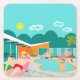 Dieser Retro homosexuelles Pool-Party-harte PapierUntersetzer kennzeichnet vier hunky Beefcakes, die eine homosexuelle alte Zeit haben, während sie die Palm- Springhitze schlagen, indem sie herum das blaue Wasser des Türkises ihres Atombumerang geformten Swimmingpools lounging. Die moderne Architektur der Mitte des Jahrhunderts auf dem fabelhaften, orange Steinhaus ist offenbar das wirkliche HauptAnwesen, die Ansicht der Berge im Hintergrund gegeben. Eine gelbe Sternexplosionsonne scheint hell im Türkishimmel, also sind Sie in der Lage, jedes reizend Detail zu sehen--von den kitschy, rosa Flamingos zu den fünfziger Jahren striped, windiger Blockzaun. Und selbstverständlich würde welches Palm Springs-Haus ohne eine Palme komplett sein?