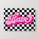 Erstellen Sie Ihre eigene Retrotypografie mit heißen rosa und rosa "Babe"-Schriftzeichen mit einem anpassbaren Schachbrettmuster auf einem rechteckigen Pinbackknopf für Ihren Junggeselinnen-Abschied. Sie können alle vier Farben in der Vektorgrafik ändern, um Ihre Hochzeitspalette Farben zu passen. Passen Sie den Text aus dem System an, um Ihr eigenes personalisiertes Design zu erstellen.