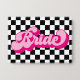 Erstellen Sie Ihre eigene Retrotypografie mit heißen rosa und rosa "Bride"-Schriftzeichen mit einem anpassbaren Schachbrettmuster auf einem rechteckigen Pinbackknopf für Ihren Junggeselinnen-Abschied. Sie können alle vier Farben in der Vektorgrafik ändern, um Ihre Hochzeitspalette Farben zu passen. Passen Sie den Text aus dem System an, um Ihr eigenes personalisiertes Design zu erstellen.