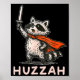 Retro Huzzah Raccoon Knight Funny Sword Meme Quote Poster