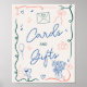 Mit unserem charmanten französisch-blauen, rosa, grün und beige Retro Cards und Gifts Poster Sign kündigen Sie den dafür vorgesehenen Bereich für Karten und Geschenke an! Dieses hübsche Schild zeichnet sich durch ein im Retro-inspiriert Design aus, das mit skurrilen Elementen wie Ballons, Kameras, Herzklopfen und einem hübschen Blumenstrauß aus Blume in einer Vase geschmückt ist. Gerahmt von einem spielerischen, schwammartigen Band, fügt dieses Schild eine Touch Vintager Eleganz in Ihr Brautparty. Mit seinen individuell gestaltbaren Farben und einem handgeschriebenen Schriftart führt er die Gäste mühelos zum perfekten Ort, um ihre guten Wünsche und Geschenke verlassen. Lass dieses Zeichen sei eine charmante Ergänzung zu deiner Feier, um sicherzustellen, dass alle Geschenke mit Liebe und Dankbarkeit empfangen werden!