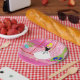 Retro in der rosa Papierplatte Pappteller