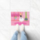 Dieses, das in der rosa Tür-Matte Retro ist, sieht wie eine Szene aus einer Sechzigerjahre romantischen Komödie heraus aus. Der unbedeutende Entwurf zeigt eine hoch entwickelte Frau in ihrem ultra kitschy und ultra rosa, Penthauswohnung. Der Raum kennzeichnet eine rosa Backsteinmauer mit weißen Bewurflinien. Vor der Wand gibt es einen grünen Kegelkamin mit einem Brüllenfeuer. Durch Glasschiebetüren sehen wir einen rosa Balkon mit einem weißen Geländer. Eine üppige, tropische Pflanze ist in einem Aqua Flowerpot. Die Ansicht vom Balkon ist von einer Silhouette eines großen Stadt Skyline. Selbstverständlich ist die Silhouette in den Schatten des Rosas! Ein Gelb, sichelförmiger Mond ist im Himmel. Auf einem heißen Rosa, Noppewolldecke in der Wohnung ist die führende Dame dieses Entwurfs stehend. In starkem Kontrast zur rosigen Welt, die sie, die schöne Blondine hergestellt hat, trägt eine Forminstallation, Schwarzes, Schaufel-necked Spitze mit einem langen, erweiterten, weißen Rock mit schwarzen Federverschönerungen. Mit diesem Entwurf können Sie die Welt auch betrachten durch Rose farbige Gläser!