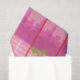 Dieses Retro In the Pink Tissue sieht aus wie eine Szene aus einer romantischen Comedy aus den 1960er Jahren. Das minimalistische Design zeigt eine raffinierte Frau in ihrem ultra kitschigen und ultra rosa Penthouse Apartment. Der Saal ist mit einer rosa Ziegelwand mit weißen Kacheln versehen. Vor der Wand befindet sich ein grüner Kamin mit Kamin und einem rauschenden Feuer. Durch Glasschiebetüren sehen wir einen rosa Balkon mit weißem Geländer. Eine üppige, tropische Pflanze befindet sich in einem Aqua-Blumentopf. Vom Balkon aus hat man einen Blick auf die Silhouette einer großen Skyline der Stadt. Natürlich ist die Silhouette in Rosatönen gehalten! Ein gelber, halbmondlicher Mond ist am Himmel. Stehend auf einem heißen rosa Teppich in der Wohnung ist die führende Dame dieses Designs. Im krassen Gegensatz zur rosigen Welt, die sie geschaffen hat, trägt die schöne Blondine ein schwarzes, schwarzes, spitzenhaltiges Oberteil mit einem langen, flachen, weißen Rock mit schwarzen Federdekorationen. Mit diesem Design können auch Sie durch die Rose-Brille die Welt betrachten!