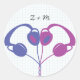 Retro Indie Kopfhörer Herz Hochzeit (Lila/blau) Runder Aufkleber