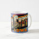 Eine alte, farbenfrohe Postkarte, die von Iowa City, Iowa, begrüßt wird. Wenn Sie eine andere Hintergrundfarbe auf der Tasse bevorzugen - es ist leicht zu ändern.