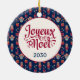 Dieses fabelhafte Weihnachtsvolkskunst blauen rund Keramik-Ornament mit einem Muster von Engeln, Nussknackern, Sternen und Geschenken, die Fröhliche Weihnachten in Französisch "Joyeux Weihnachten" und hat das Jahr würde phantastisch auf Ihrem Weihnachtsbaum aussehen. Es ist so festlich und passt zu jeder Weihnachtsdekoration - es ist rustikal, aber zurückhaltend und modern und doch traditionell! Holen Sie sich ein paar Geschenke für Lieben...sie werden es Liebe!