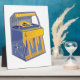 Blau und orange Retro Jukebox Abbildung. Transparentes Design für helle und dunkle Gegenstände. Benutzen Sie es so, wie es ist, oder passen Sie es mit Ihrem Text an.