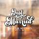 Retro schwarz-weiß nur verheiratet Aufkleber für ein frisch verheiratetes Paar. Legen Sie nach Ihrer Hochzeit auf das hintere Fenster Ihres Autos.