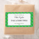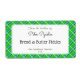 Ein Retro-Konserven- oder Lebensmitteletikett mit handgeschriebenem Skript und Slab-Buchstaben auf einem grünen Gingham-karierten Muster mit kleinen, weißen und blauen Streifen für Pickles, Konfitüren oder andere Rezepte von Ihrem oder Ihrem kleinen Unternehmen.