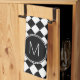 Dieses Retro-inspirierte Küchenschüssel-Handtuch weist ein schwarz-weiß diagonal kariertes Muster auf. Personalisieren Sie das passende Schwarz-Weiß-Monogramm mit Ihrer Wahl des Initials. Macht ein großartiges Geschenk für die Hauswärmung.