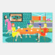 Kartenspiel-Aufkleber dieser Retro Frauen kennzeichnen wöchentliche ein Cartoonzeichnen von vier modernen Frauen der Mitte des Jahrhunderts an einem Henne-Party. Sie sind in einem stilvollen Esszimmer gesellig. Auf einem Türkis und aquamarinen einer Ziegelsteinwand gibt es eine Mitte- des Jahrhundertsmoderne Kugel-Kunst der ausgedehnte Leinwand-Druck, der von StrangeLittleOnions Zazzle Speicher verfügbar ist. Mein, haben sie guten Geschmack! Durch Glasschiebetüren können wir den Stoff, grüne Rasen sehen der Vororte. Über der Straße gibt es ein glattes orange Haus mit einem rosa und weißen Auto, das im Autoparkplatz geparkt wird. Zurück im Esszimmer, setzen drei Frauen an einem runden Tisch mit einer orange Tischdecke. Es gibt einen Redhead in einem gelben Kleid, in einem brünetten in einem grünen Kleid und in einer Blondine in einem roten Kleid. Sie halten Karten in ihren Händen. Vier Teacups sind auf der Tabelle warteten gerade, von der behaarten Hosteß des Raben in einem rosa Wigglekleid gefüllt zu werden. Sie trägt einen Behälter mit einem Tee Carafe, der auf es gehockt wird. Alle Frauen haben eine wunderbare Zeit, aber sie sollten ein Auge auf der Blondine vermutlich behalten. Wenn diese Karte, die sie hinter ihr hält zurück, jedes mögliches Anzeichen, sie betrügt ist! Diese stellen Spaß-Umschlag Aufkleber für Einladungen zu den girly Treffen her!