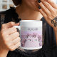 Mädchen, niedlich, Vintag, Retro-lila Tasse mit Kawaii-Katze, farbenfrohe Streifen, Blume und individueller Spitzname.