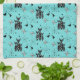 Ein super niedliches Muster von Kätzchen, atomaren Sternexplosionen und abstrakten Formen, inspiriert durch Retro Mitte des Jahrhunderts Designs in türkisblauen, schwarzen und weißen Farbtönen.