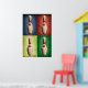Ikonische und Retro Bowling Buttone für die menschliche Höhle. Vier Paneele rot grün blau und gelb mit antiken King-Buttone.