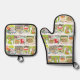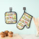 Eine bunte, kitschige Kochbuch-Illustration auf einem hochwertigen Backofen-Mitt / Potthalter-Set (auch separat erhältlich). Sehr hell und fröhlich, macht es zu einem perfekten Geschenk für Hauswärmer oder Gastgeberin. Erhältlich in Ihrer Wahl der Hintergrundfarbe und hitzebeständigen Unterlage. Eine schöne Retro-Ergänzung zu jeder modernen Vintagen Küche.